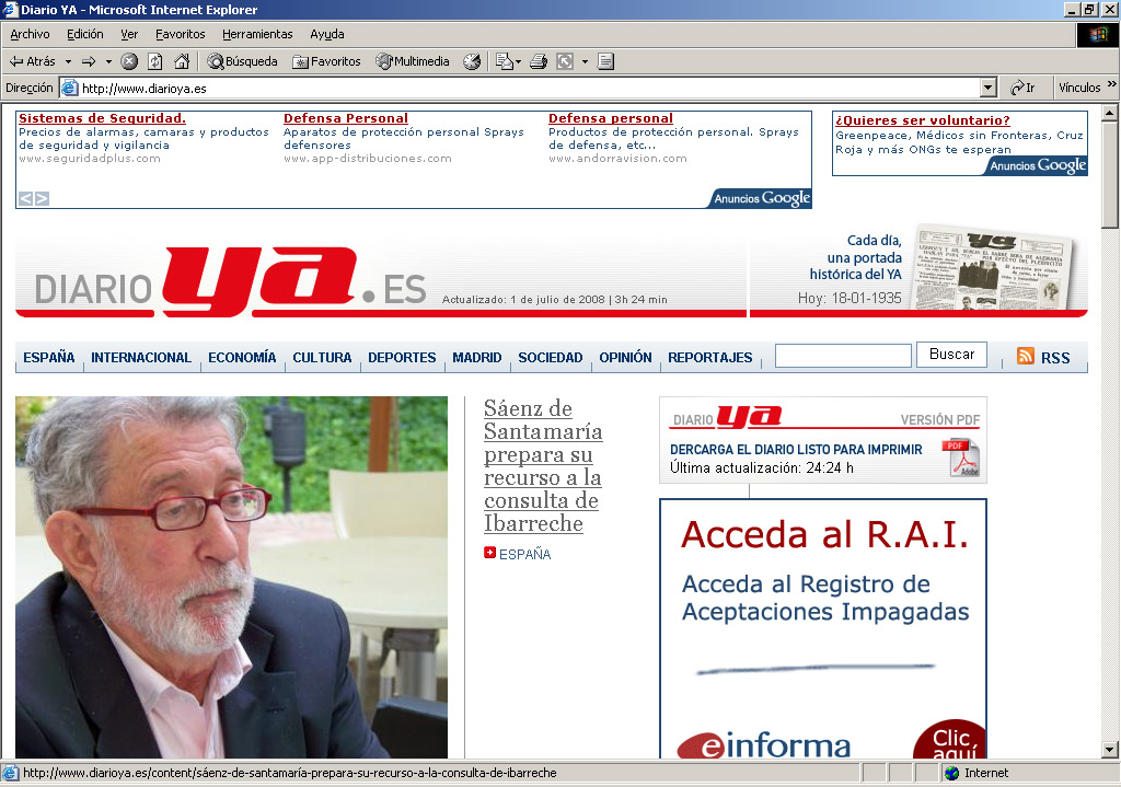 La sociedad española recupera hoy una cabecera histórica de la prensa nacional. El diario YA, que desapareció de los quioscos a finales de los ´90, renace hoy de sus cenizas en Internet, el nuevo mundo (aún sin explorar del todo) de las comunicaciones humanas.