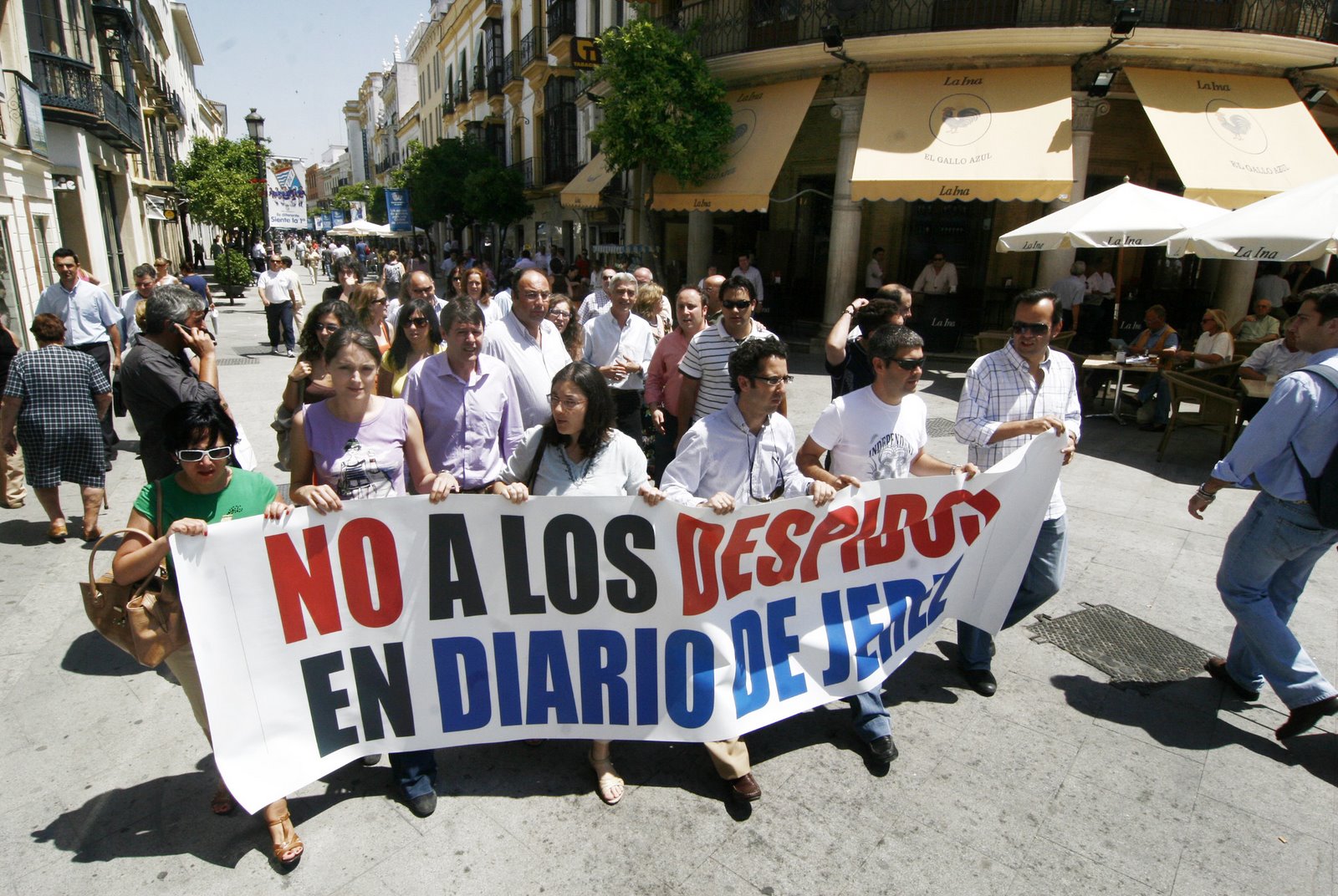 En Jerez, los trabajadores de esta empresa son conscientes de que la amenaza del recorte de personal se cierne ahora sobre ellos. Ante esta cicunstancia, y también en solidaridad con sus compañeros despedidos, hoy protagonizaron una protesta que recorrió la calle Larga encabezada por una pancarta en la que se podía leer: No a los despidos en Diario de Jerez.