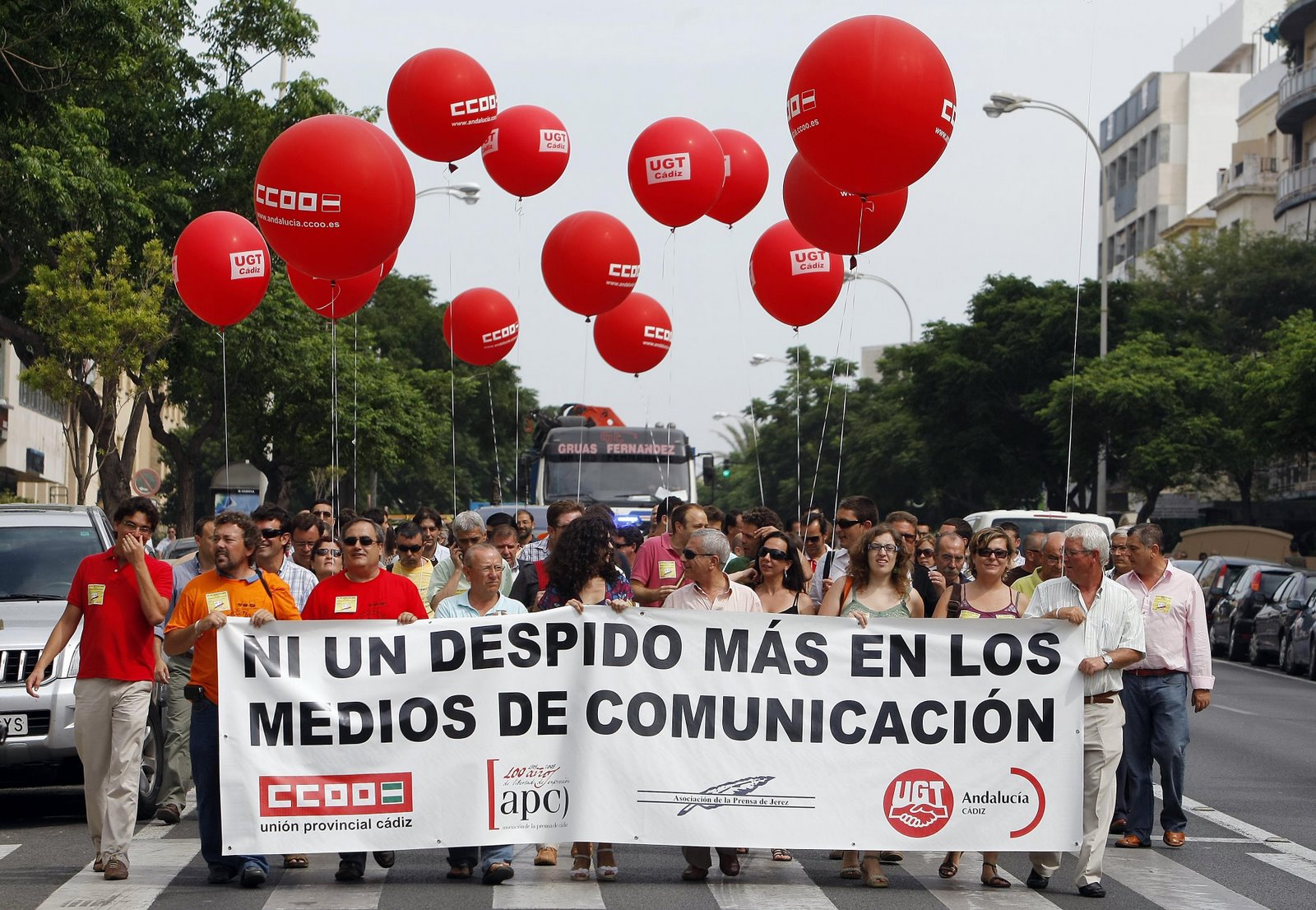 Unos 350 trabajadores y trabajadoras del sector periodístico de la provincia de Cádiz se movilizaron el pasado día 22 de junio en la capital gaditana para denunciar ante la opinión pública los despidos y recortes de plantilla que se están produciendo en los distintos medios de comunicación.