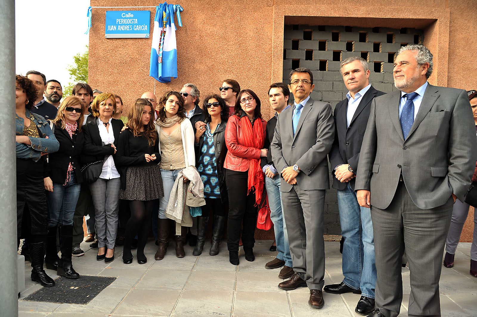 Fue el pasado lunes día 12 cuando se inauguró la calle con el nombre Periodista Juan Andrés García, en un acto presidido por su madre, su viuda y sus dos hijas, que pudieron comprobar el gran recuerdo, la admiración y el profundo respeto que los compañeros sienten por un compañero que fue una de las voces más emblemáticas de Canal Sur y que durante años formó parte de la junta directiva de esta Asociación de la Prensa de Jerez.