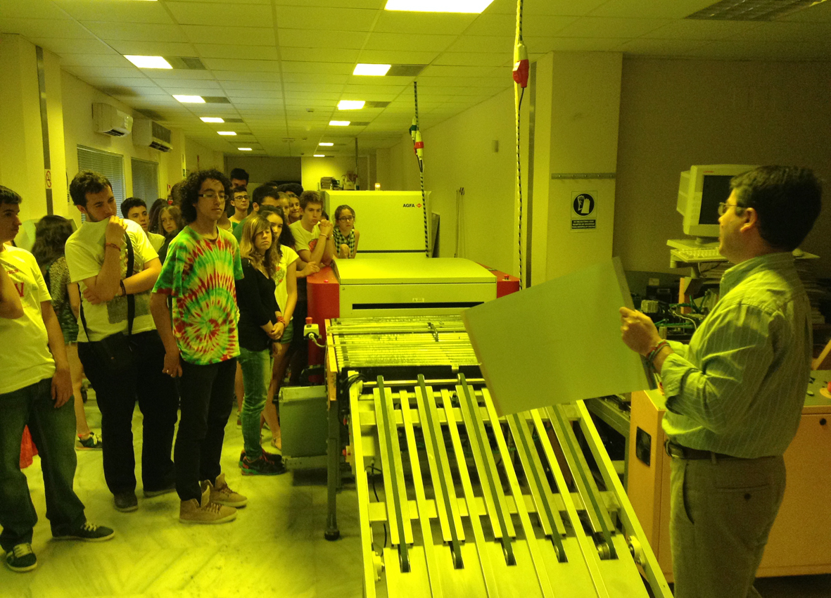 A continuación, pasaron al taller de preimpresión, donde se preparan las planchas que posteriormente se enviarán a la rotativa para la impresión del periódico.
