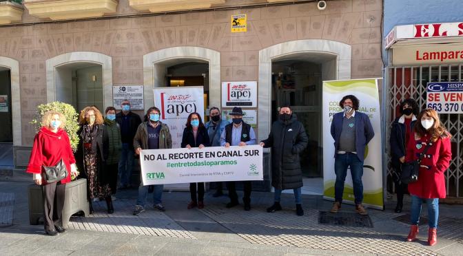 El acto ha concluido a las puertas de la Sede de la Asociación de la Prensa de Cádiz en la Calle Ancha donde los representantes de la RTVA y los colectivos implicados han sostenido una pancarta reivindicativa.