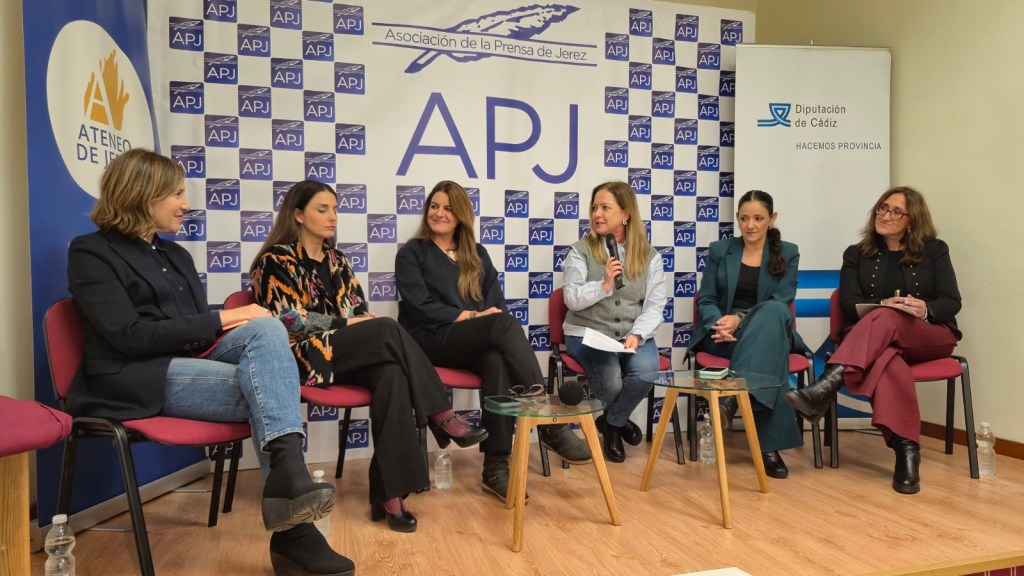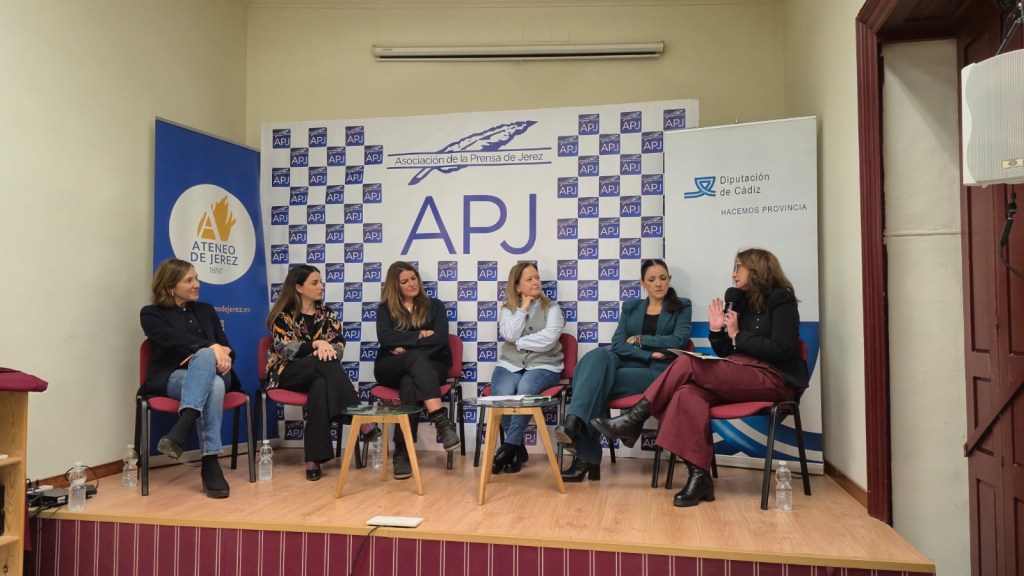La Asociación de la Prensa de Jerez ha organizado la I jornada “Liderazgo femenino en el periodismo”, que ha contado con el patrocinio de la Diputación Provincial de Cádiz. El Ateneo de Jerez fue el escenario de esta primera edición en la que han intervenido: Lourdes Acosta, directora de SER Cádiz; Mercedes Núñez, gerente de Jerez Televisión; María Almagro, directora de La Voz de Cádiz; María del Mar Carrasco, jefa del departamento de Radio y Televisión municipal Onda Jerez; y Victoria de Haro, directora de Canal Sur en la provincia de Cádiz, estando moderada por la periodista Chari Jiménez.