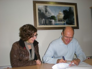Miguel Ángel Ruiz y Mª José Pacheco sellan el acuerdo. Foto: Mercedes Prieto