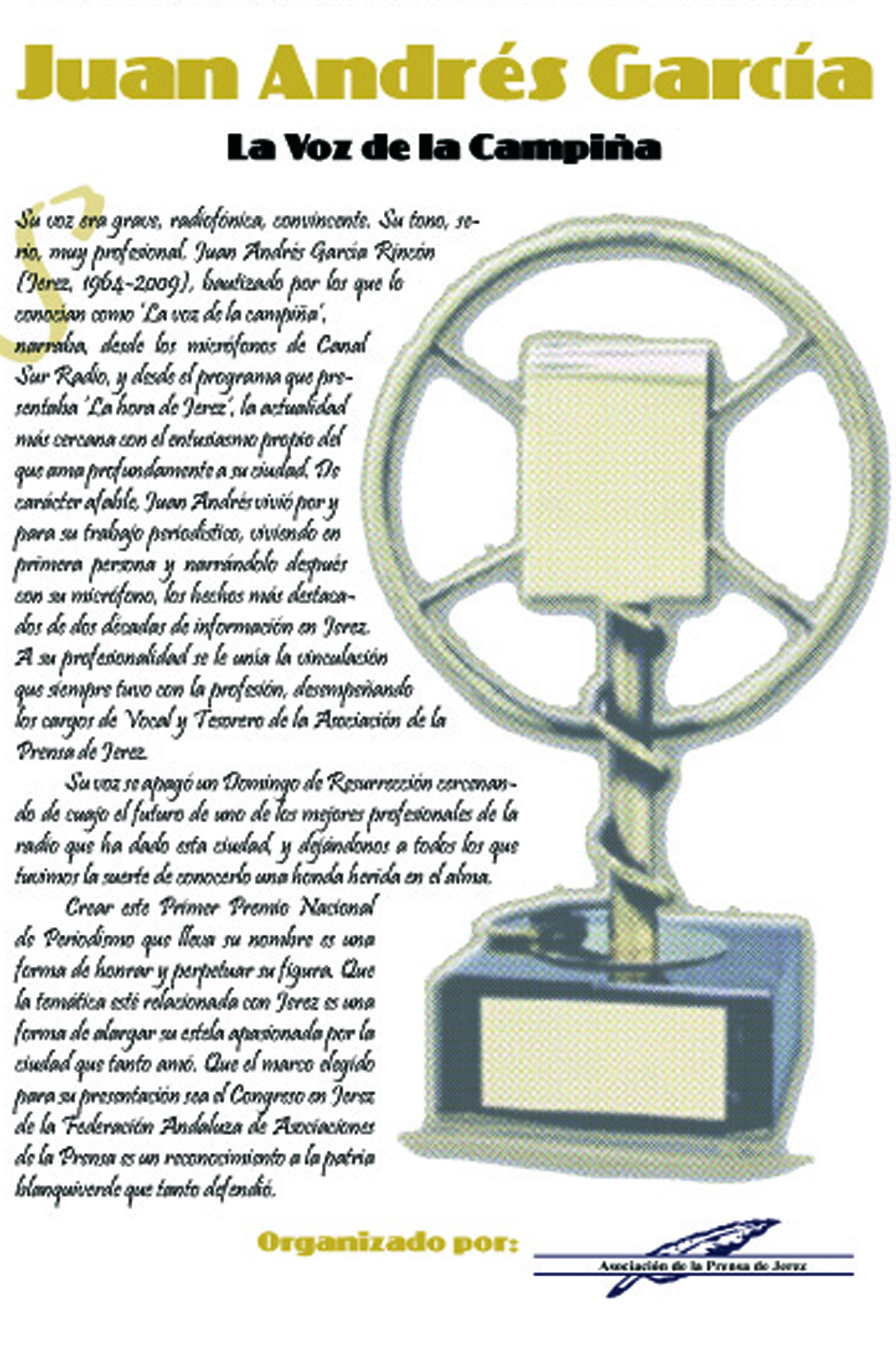 - Premio Juan Andrés García: Francisco Méndez, por su reportaje radiofónico “Nacho y los invisibles”, emitido en Canal Sur Radio.